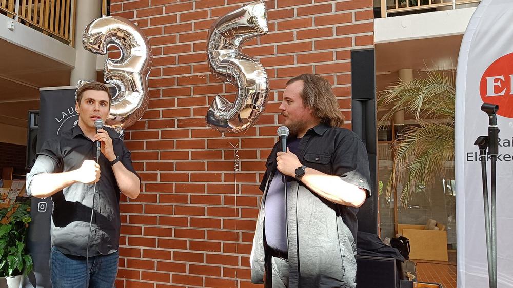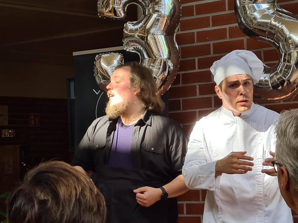 Juhla aloitettiin raisiolaisittain komiasti alkumaljalla ja lounaalla.