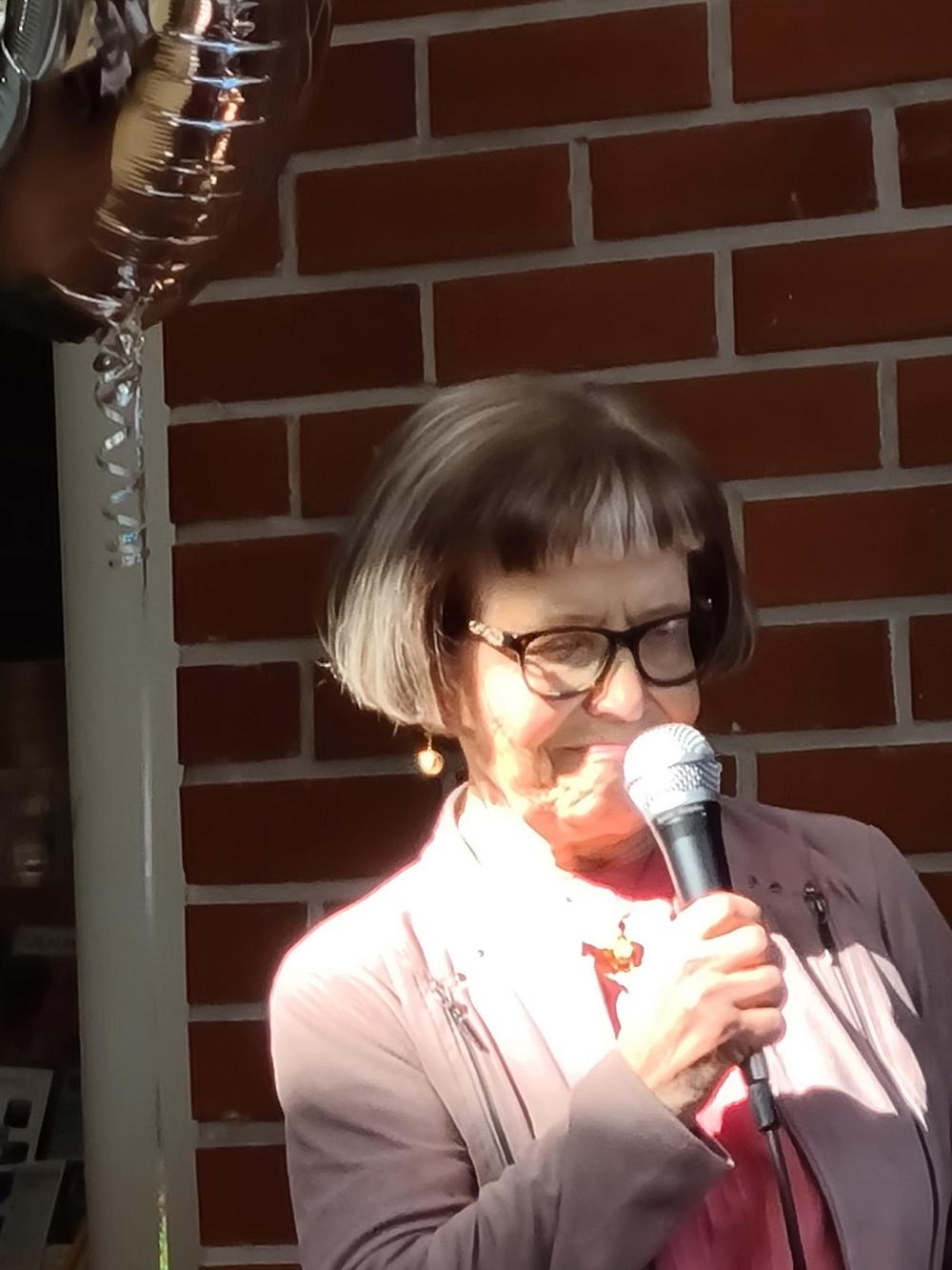 Tervehdyksen juhliin toi myös Helinä Aaltonen Raision vanhusneuvoston Eläkeläiset ry:n puolesta. Hän onnitteli juhlivaa yhdistystä ja kiitti hyvästä yhteistyöstä. Lausuipa hän pienen runonkin.